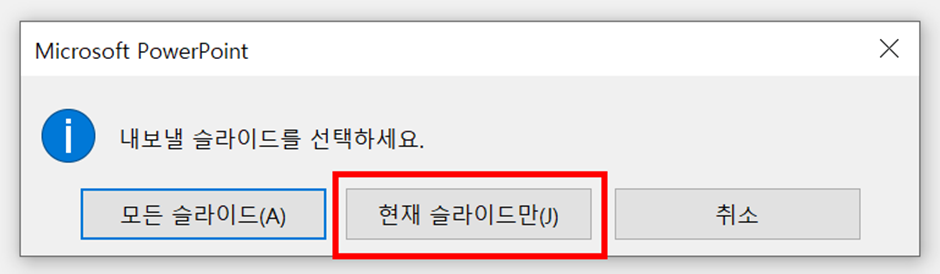 보통은 PNG 파일로 내보낼 "현재 슬라이드만(J)" 지정해서 내보냅니다.