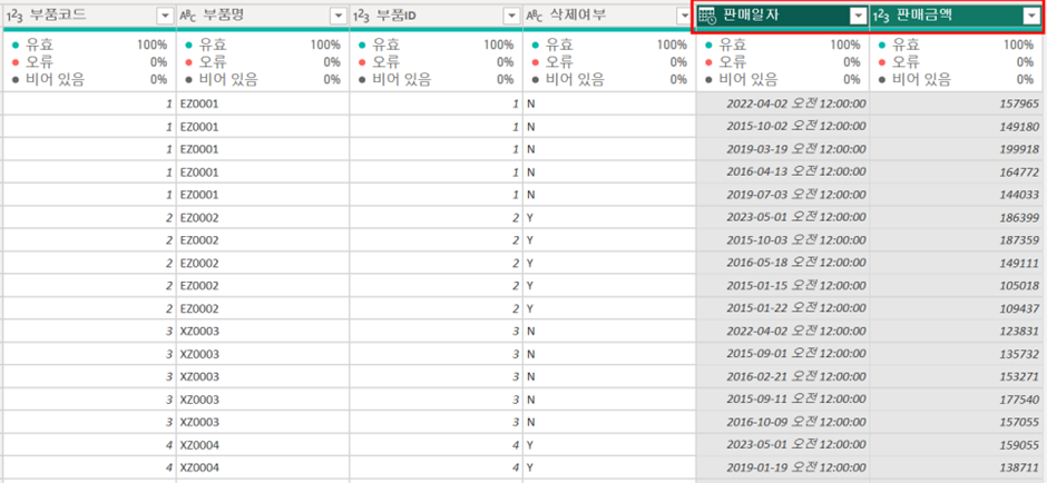 그럼 아래와 같이 [판매일자], [판매금액] 칼럼이 오른쪽에 잘 출력되는 것을 보실 수 있습니다.