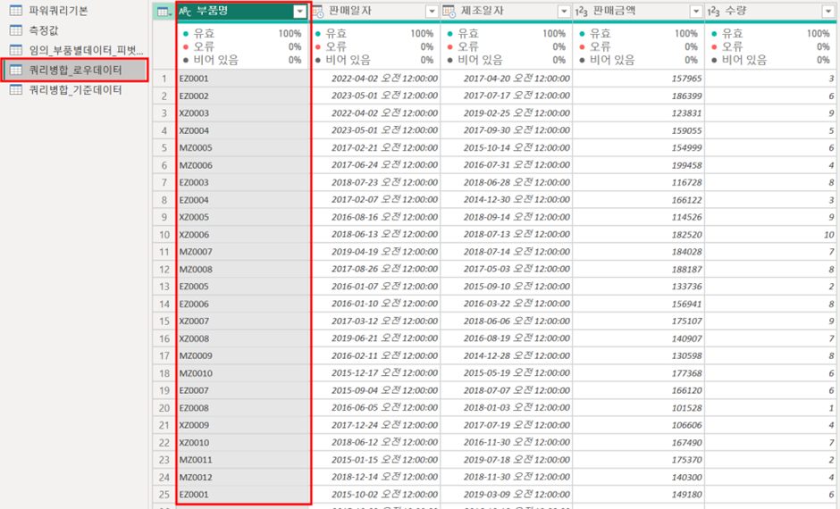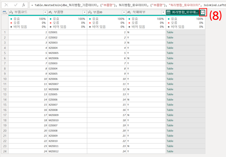 (8) [쿼리병합_로우데이터] 라는 칼럼이 생기는데,