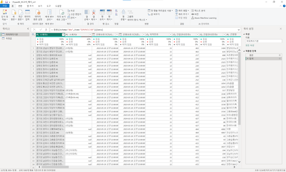 아래 화면과 같이 내가 전처리 하고자 하는 테이블의 [파워쿼리 편집기]로 진입이 됩니다.