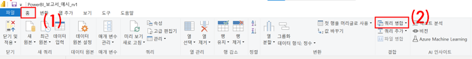(1) 파워쿼리 홈 리본 메뉴
