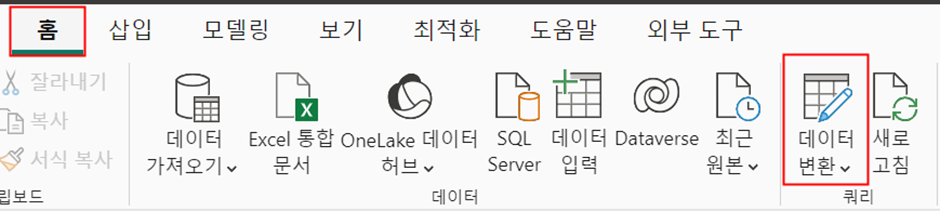 첫번째, [홈] - [데이터 변환] 탭으로 진입하기.