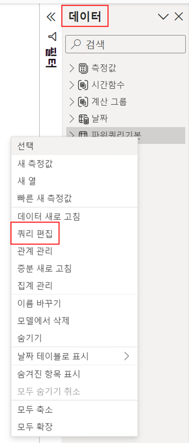 두번째, [데이터] - [쿼리 편집] 화면으로 진입하기
