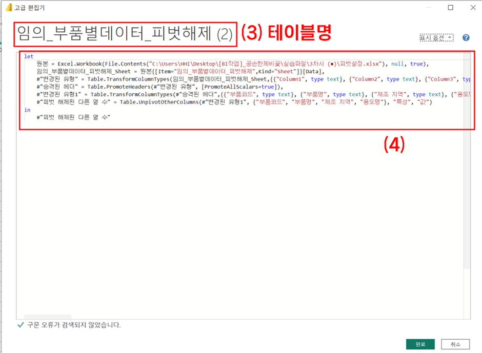 그 다음은 파워 쿼리에서 핵심 중 하나인 "고급 편집기" 입니다.