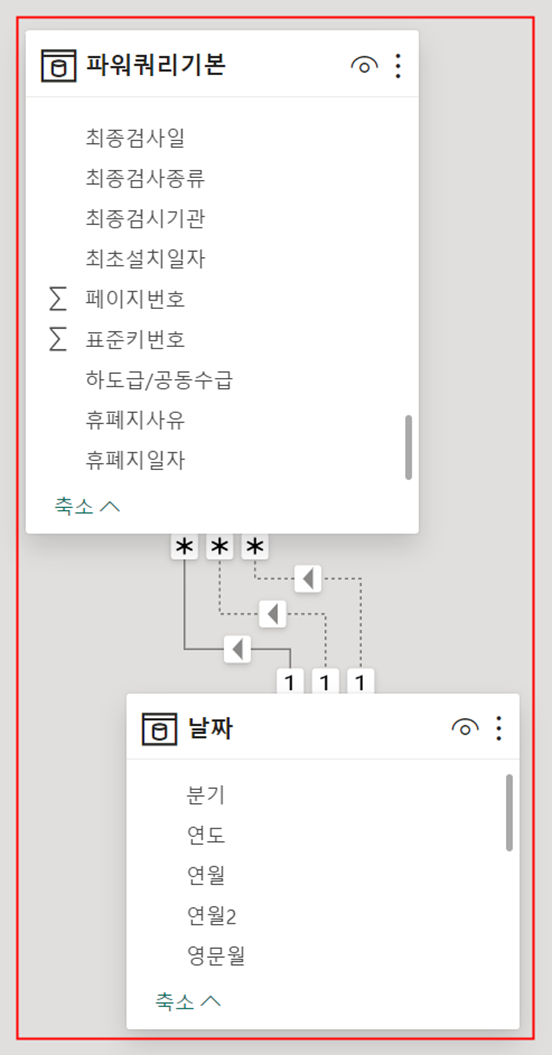 "날짜" 테이블과 어떤 테이블 간 관계를 만들어야 합니다.