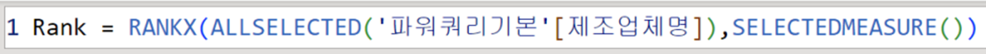 아까 예시로 보여드렸던 RANKX DAX 함수입니다.