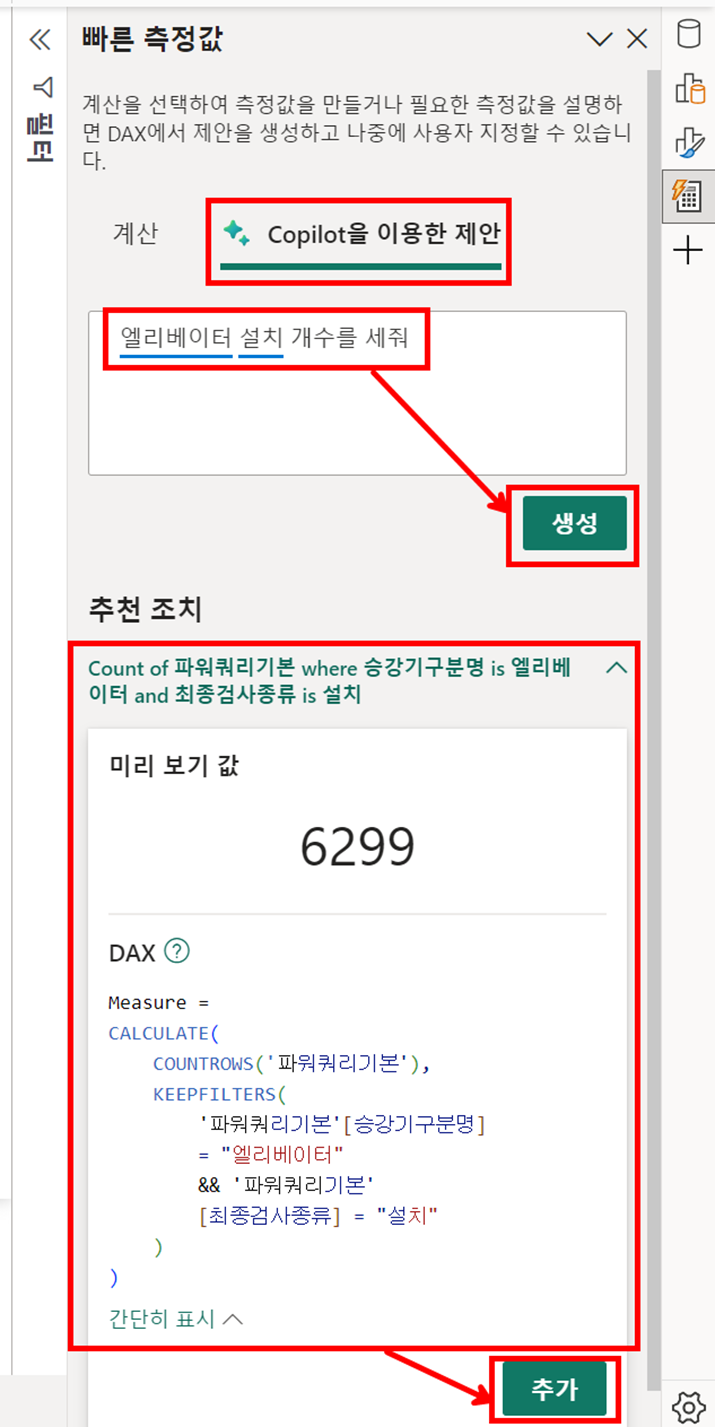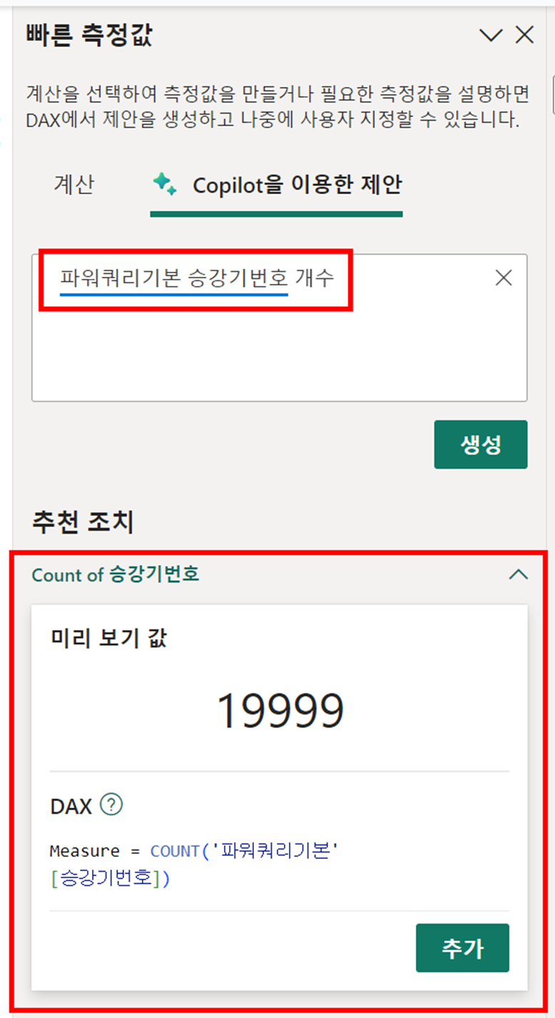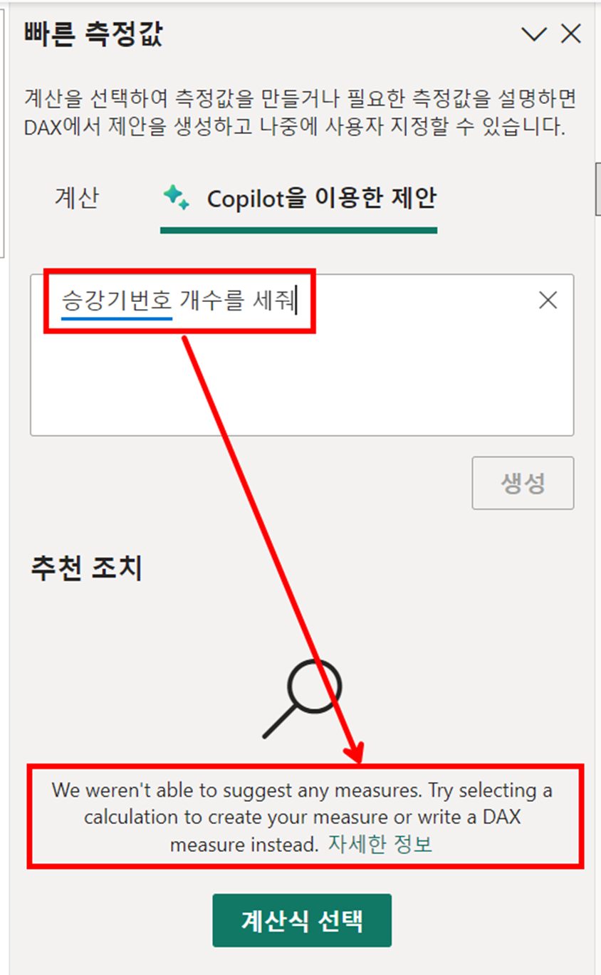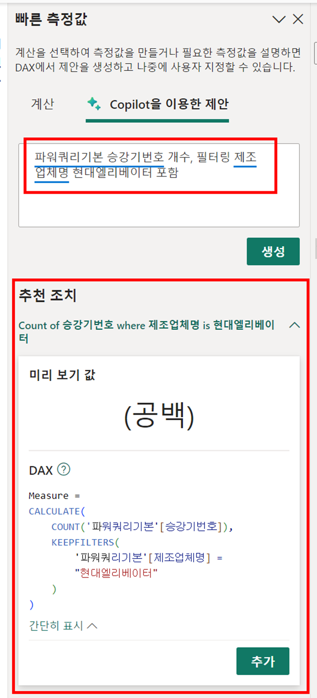 단점은 사용자가 불편하고, DAX를 구성하는데 이 AI가 잘 인식하지 못합니다.