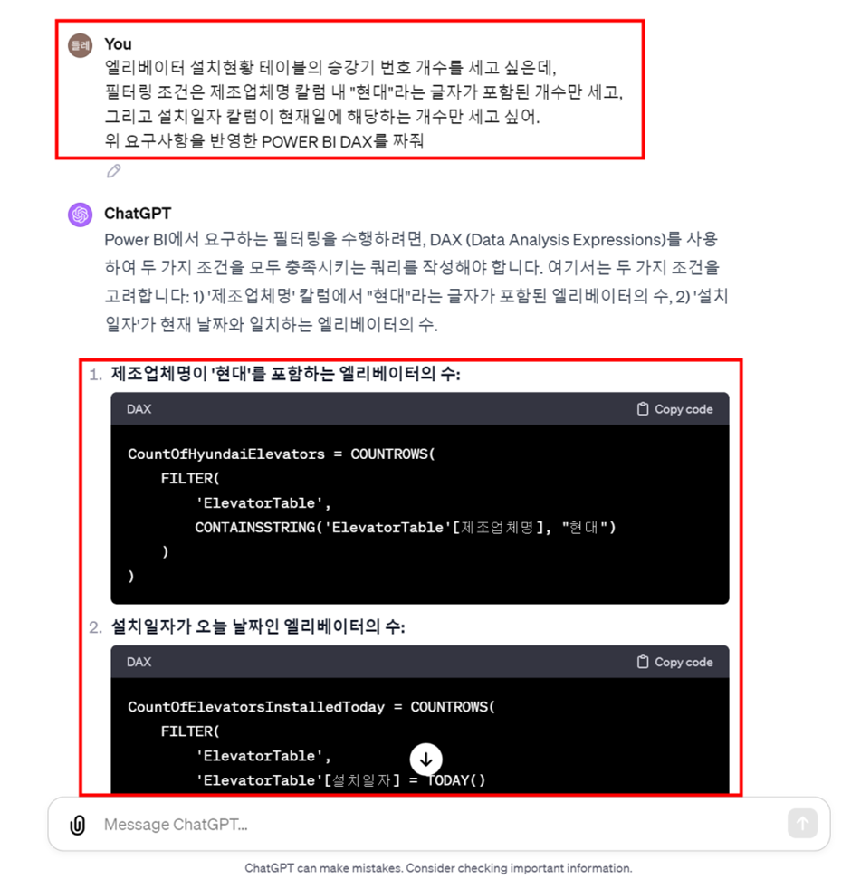 사실 쉬운 DAX 구성을 요청해도 종종 이상한 답변을 뱉기도 하는 터라.. 😒