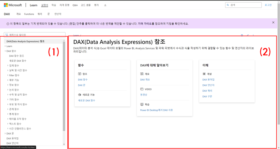 먼저 1) Microsoft DAX Docs 활용하기 먼저 살펴볼게요.