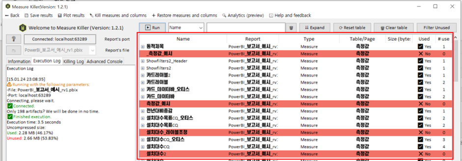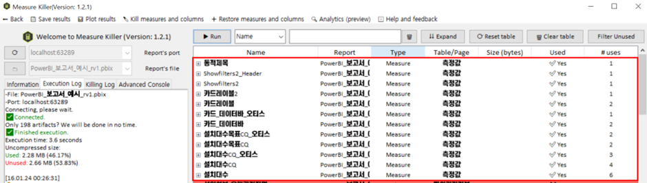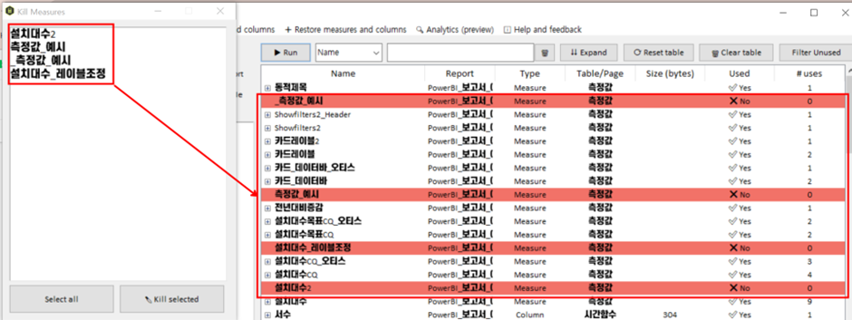 그럼 지금 현재 pbix 파일에서 안쓰는 Measure (측정값)을 어떤식으로 찾아주는지