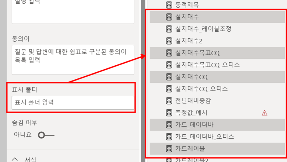 측정값 테이블 안에서 "폴더"로 관리하면 정말 편리합니다.