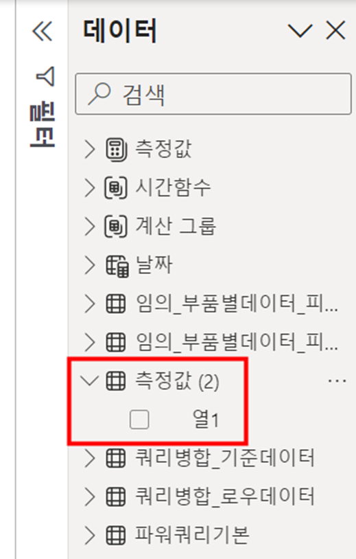 ※ 참고로 아래 "측정값(2)" 라고 뜬 부분은 이미 테이블이 있는 경우 (2)라는 번호를 자동으로 생성합니다.