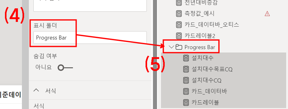 4) [표시 폴더] 내 폴더명을 "Progress Bar"로 입력하게 되면,
