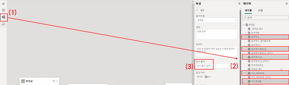 저는 이미 측정값 테이블이 있는 경우이므로 (2)라는 숫자가 없어도 걱정마세요 😀