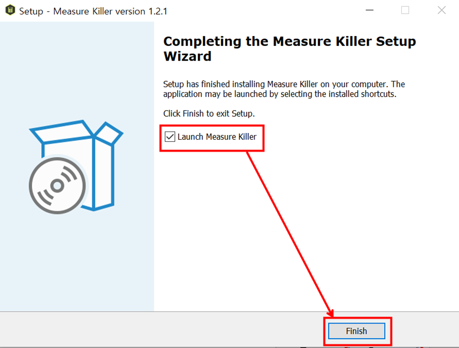 - [Finish] 버튼 클릭 후 Measure Killer를 실행시켜주세요.
