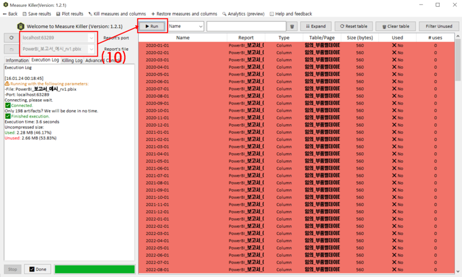 10) 그 다음 "Report's Port"와 "Report's File"을 선택 - [Run] 버튼을 눌러주세요.