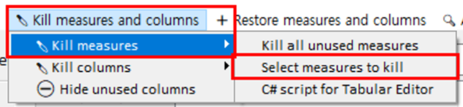 13) "Kill measures" - "Select Measures to kill"을 눌러서 삭제할 Measure를 선택해주세요.