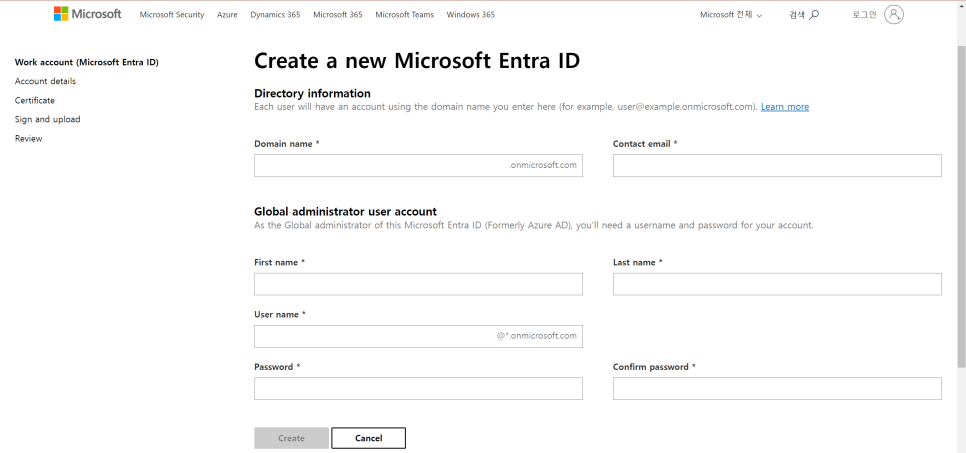 대부분 AAD 계정은 "개인"이나 혹은 "조직"에 이미 속해있으시지만 개인이 도메인의 관리자가 되어