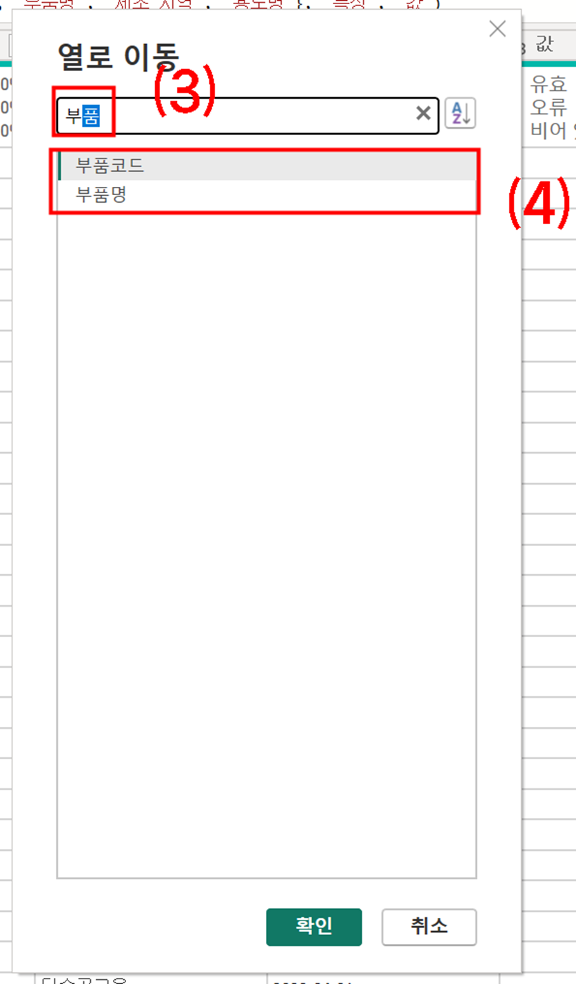(4) 찾고자 하는 열을 클릭 한 후 [확인] 버튼 클릭